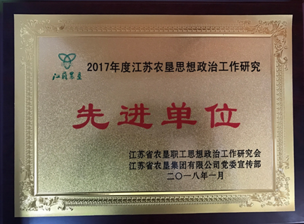 1月14日,在江蘇農墾2017年度政研會年會暨思想政治工作會議上,蘇舜公司榮獲2017年度墾區(qū)思想政治工作研究先進單位。