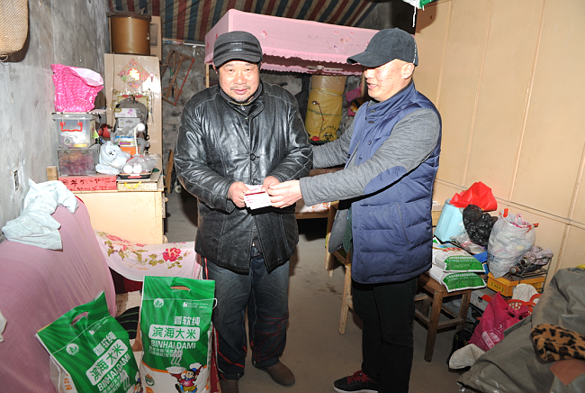 “你就捐助一戶吧,我們城西就嚴建明最困難,他患有哮喘病和慢性阻塞性肺氣腫,已病休多年,因體弱多病不能勞作。”臧成龍聽后深表感謝地說,“嚴建明的妻子已經(jīng)去世兩年了,家中還有一個上大學的女兒,他的家境真是讓人看了心酸。”