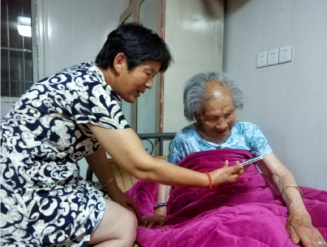 “我媽今年百歲生日那天還對(duì)著話(huà)筒,向來(lái)賓祝大家新年好哩!”老人的女兒唐淑蘭說(shuō),“前幾天,老人拿著我的手機(jī)看到才出生10天的玄孫還在睡覺(jué)時(shí),還對(duì)著手機(jī)一個(gè)勁地喊,寶寶,寶寶,眼睛睜睜,眼睛睜睜……”
