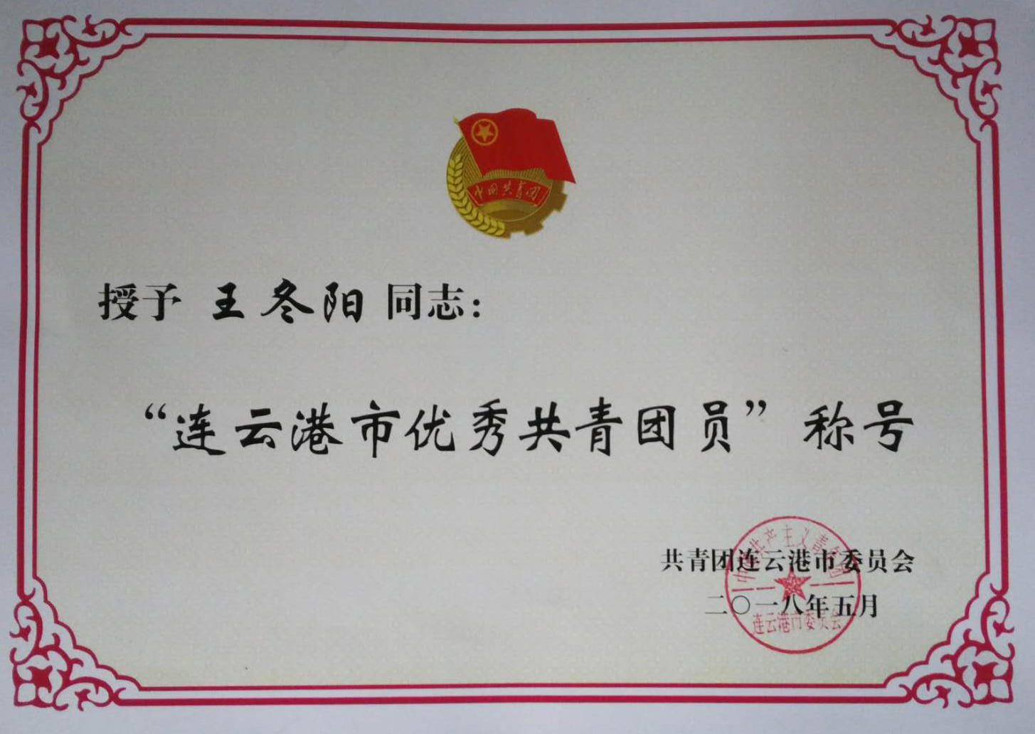 近日,從共青團(tuán)連云港市委員會傳來喜訊,東辛農(nóng)場社區(qū)東方路居委會干事王冬陽被授予2017年度“連云港市優(yōu)秀共青團(tuán)員”榮譽(yù)稱號。
