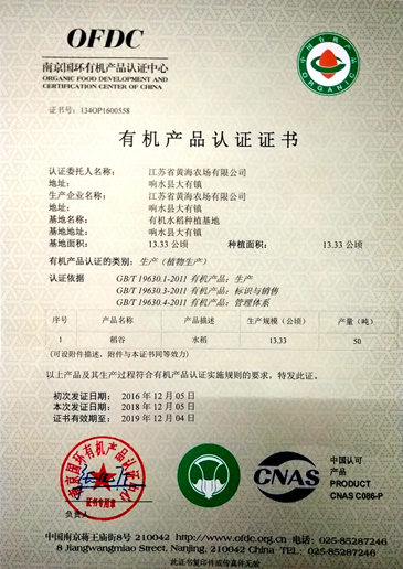 近日,黃海農(nóng)場有限公司欣喜的收到中國綠色食品發(fā)展中心頒發(fā)的青花菜(西蘭花)綠色食品證書和中國有機產(chǎn)品認證機構(gòu)頒發(fā)的有機產(chǎn)品認證證書。至此,黃海已獲得10.1萬畝綠色原料(水稻)標準化生產(chǎn)基地、綠色青花菜和有機水稻基地三項證書,品牌建設(shè)再添新成果。