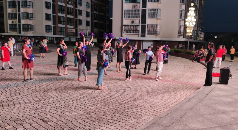 每天傍晚,淮海農場文化廣場聚集著許多職工居民在這里健身跳舞,三個舞蹈方陣在音樂噴泉和廣場視頻節目的烘托下,在廣場的各個區域各展身姿,放飛自我,享受著“我運動、我健康、我快樂”的氛圍之中。目前6000平方米的文化廣場是農場社區和周邊職工群眾文娛活動的主要場所,廣場周邊樓宇的輪廓燈顯示著氣派居住和生活環境,眾多職工居民的融入讓文化廣場更有人氣和特色,綠植錦簇,歡聲笑語,文化廣場成為了歡樂的海洋,美麗的廣場成了職工居民健康休閑娛樂的好去處,靚麗的文化廣場還讓許多職工居民帶著孩子在這里親子游玩,并在互動和拍照留念中享受著生活的美好。