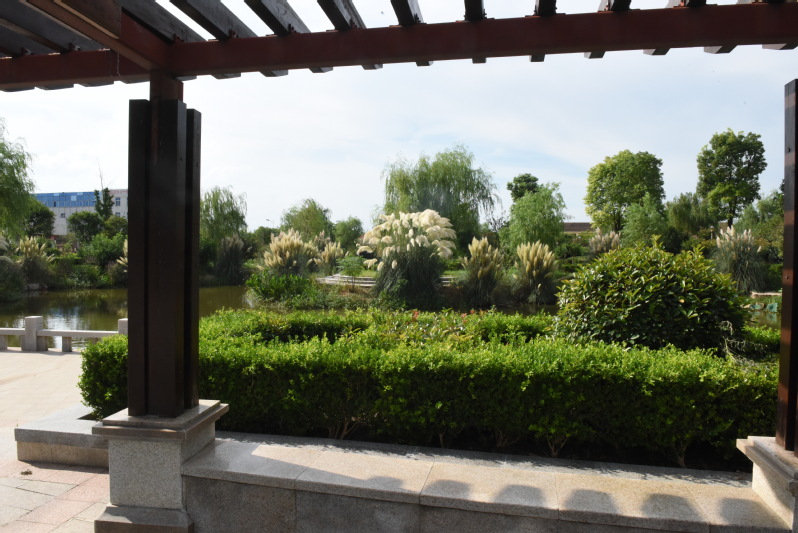 處署時節,要入在淮海農場淮海公園中什么最美麗,大家一定都把手指向了公園中到處綻放著花序的蒲葦了。烈日下站中公園的長廊下,享受著蔭涼的愜意,欣賞著遠近開放的蒲葦草,此時的心情甭提有多開心了。雖然公園內花卉開放的不是很多,但在綠色一片的植被中,那些置身于河邊、石旁、亭邊的那一簇簇高大的蒲葦草展現出來的,無數銀白色的大型圓錐花序,宛如素凈少女般婀娜多姿,清麗婉約中又顯風情萬種。他們好像是在公園內旁若無人般地肆意開放著,如花如景更如情,亭亭玉立地自成一景,又融入到周邊的綠植和造型的景觀里,讓在此流連的職工居民無不駐足觀賞,手機中留下它美麗的風景。
