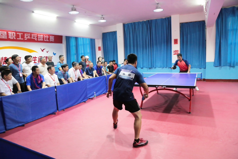 比賽開始后,大家迅速進入狀態,參賽選手揮汗如雨、積極拼搏,不到最后一刻決不放棄,爭奪十分激烈,球桌上不斷出現精彩對決。賽場外,吶喊聲和歡呼聲此起彼伏,興奮的“好球”聲不斷。