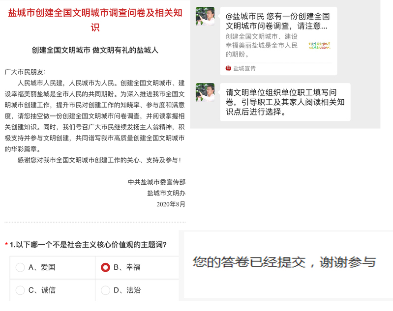 為深入推進(jìn)鹽城市全國(guó)文明城市創(chuàng)建工作,提升群眾對(duì)創(chuàng)建工作的知曉率、參與度和滿意度,連日來(lái),新洋農(nóng)場(chǎng)有限公司文明辦按照市文明辦要求,積極組織開(kāi)展創(chuàng)建全國(guó)文明城市問(wèn)卷調(diào)查工作,全面向轄區(qū)職工群眾宣傳普及文明城市創(chuàng)建知識(shí)。