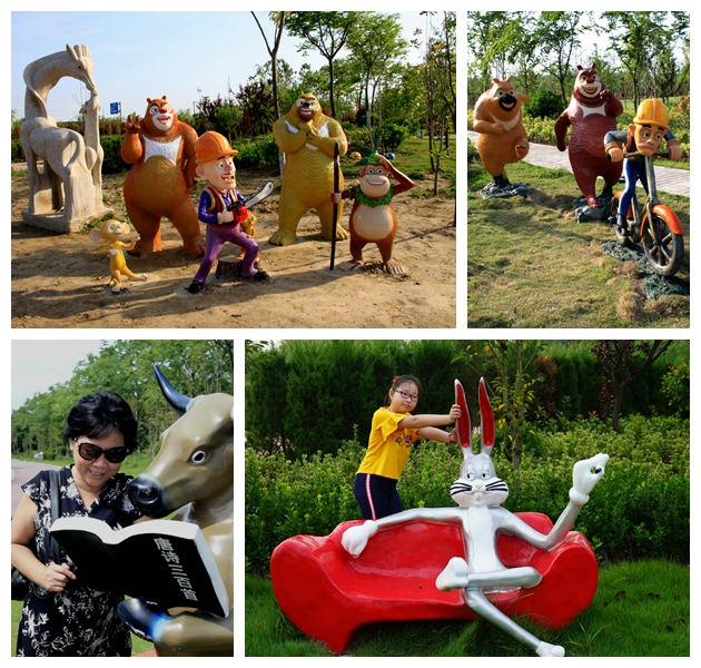 金龍灣兒童樂園的卡通形象十分惹人喜愛,小兔子笑容可鞠瀟灑地坐在椅子上、老牛哥旁若無人的讀著唐詩,大熊小猴形象幽默夸張地歡迎著路人……在金龍灣步道散步或游覽路過兒童樂園時,擬人化的卡通形象給人以親切感,人們總要駐足觀望與其親昵一番,并與之合影留念。