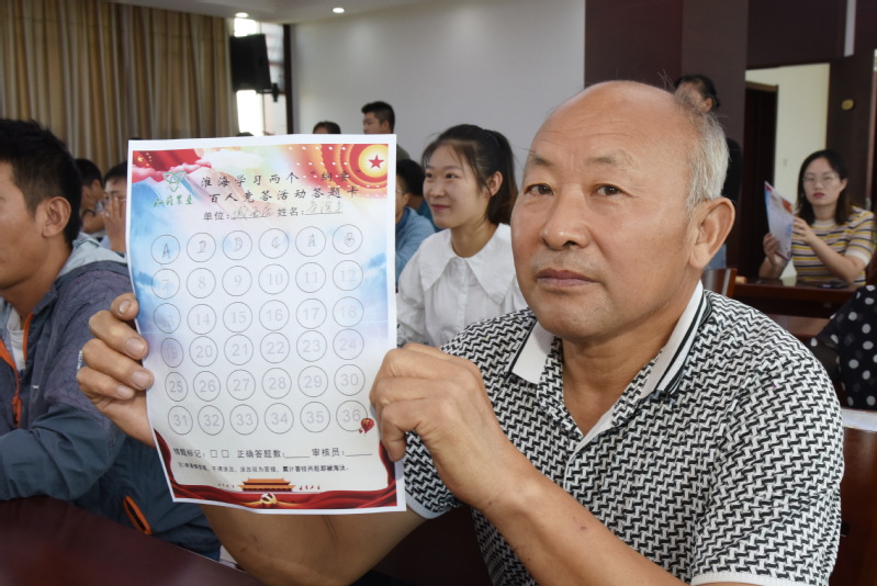 在現(xiàn)場(chǎng)參加兩個(gè)《綱要》學(xué)習(xí)考試的還有如辛濱豐、王成超、花茂忠、朱綿林等老人,雖然他們先后因?yàn)榇疱e(cuò)了題而離開(kāi)了座位,成為了后排觀看的觀眾,但我們從他們?cè)谘哉Z(yǔ)中,對(duì)農(nóng)場(chǎng)舉辦兩個(gè)《綱要》的活動(dòng)給予了高度評(píng)價(jià)和肯定。