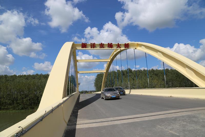 射鹽線是射陽縣城合德鎮(zhèn)直達鹽城市亭湖區(qū)鹽東鎮(zhèn)的大通道,橫跨黃沙港的252米的大橋是射鹽線上最長的公路大橋,2018年大橋建成后,貫穿新洋南北的射鹽路隨即開通。新洋農(nóng)場到縣城合德的路程比原來縮短了一半,同時新洋人向南到鹽城、大豐、東臺等地又多了條路徑。大橋建成一段時間來,這座大橋沒有公開它的命名,都在隨口叫它“黃沙港大橋”。可西起建湖縣黃土溝,經(jīng)上岡鎮(zhèn)、黃沙港閘入海,全長88.9公里長的黃沙港上有數(shù)十座大橋,統(tǒng)稱叫它“黃沙港大橋”辨別不出它的方位,叫人(特別是外來人)一時摸不清頭腦。現(xiàn)在有了正式名稱“新洋農(nóng)場大橋”,讓人一看就知道大橋位于新洋農(nóng)場。南來北往的行人和駕駛員,一上大橋就看到了“新洋農(nóng)場大橋”六個鮮紅的大字,把“新洋農(nóng)場”這個地名深深地印刻在腦子里,極大地增強和擴大了“新洋農(nóng)場”的知名度。