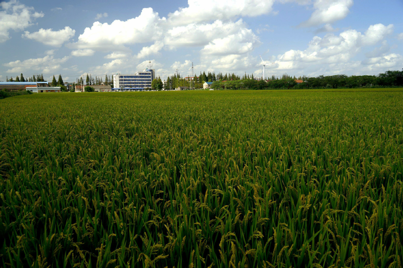站在高處眺望:新洋分公司數萬畝水稻已微微泛黃,一陣秋風吹來,蕩起層層稻浪,讓人心曠神怡。