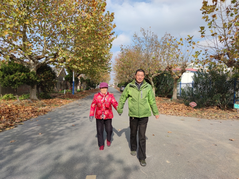 每天在淮海農場淮海路、健康路、神禾路、黃海路上,我們總是能見到一位老人被兒子牽著散步時的鏡頭。知道的人都很是羨慕這位老人,“夏秀英哪里修得這么好的福氣,生了一個這么體貼關愛的兒子呢?!”