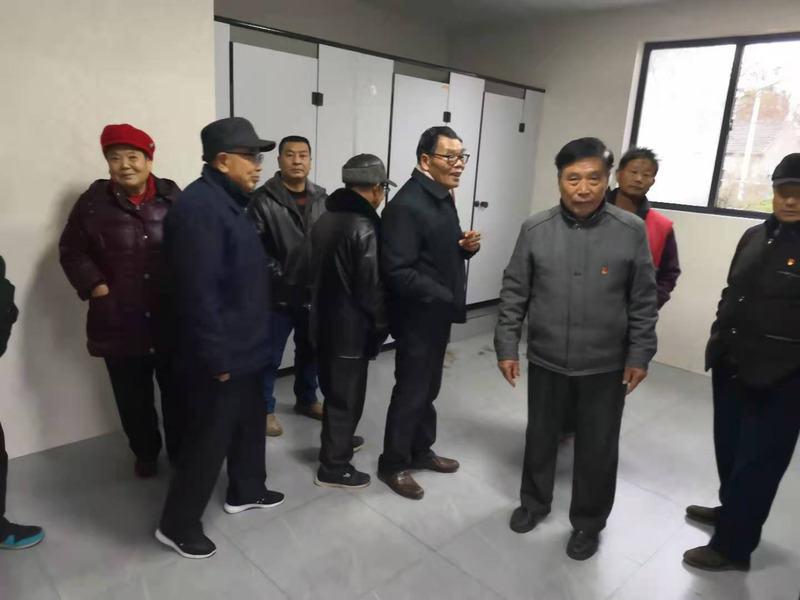 圖為支部黨員對民生工程衛(wèi)生廁所贊不絕口