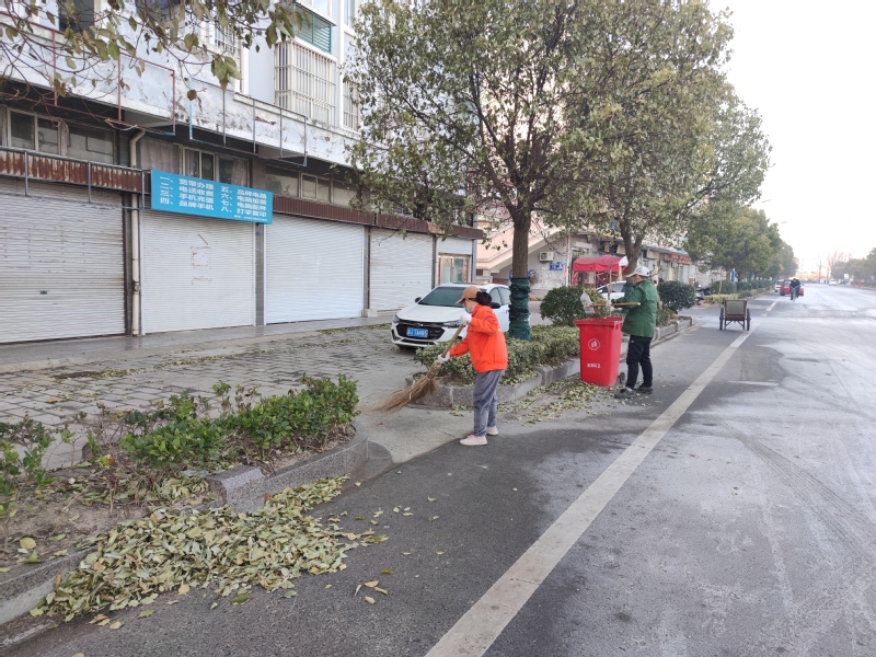由于前期農(nóng)場遭受到了零下十一二度的凍害,加上近期太陽較好,被凍死的香樟樹葉迅速失水干癟,特別是淮海路栽植的香樟樹較大較多,落葉堆積較多,為進一步提升了農(nóng)場小城鎮(zhèn)的形象,為即將來臨的新春佳節(jié)營造出良好的環(huán)境氛圍,近日來,淮海農(nóng)場綠化環(huán)衛(wèi)所不但加強了沿路環(huán)衛(wèi)職工對樹葉等雜物的清掃力度,還組織環(huán)衛(wèi)職工開展突擊清理綠化帶內(nèi)的雜物垃圾,作業(yè)人員利用專門訂制的“釘耙”掃帚或是夾剪將雜物撈出,然后用編織袋統(tǒng)一裝袋,集中運走,為生態(tài)美麗淮海營造出亮麗的色彩。圖為環(huán)衛(wèi)職工們在清掃路面時的鏡頭。