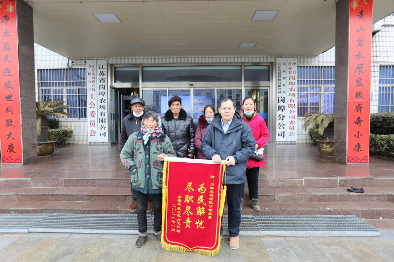 “感謝農(nóng)場公司黨委為民辦實事,幫助解決我們村的實際困難!”1月25日上午,崗埠生產(chǎn)區(qū)方光蘭、李之友、李德生等5人將寫有“為民解憂盡職盡責”的錦旗送到了農(nóng)場公司副總經(jīng)理李中明手中,對農(nóng)場公司黨委主動幫助解決崗埠村出行困難表示感謝。