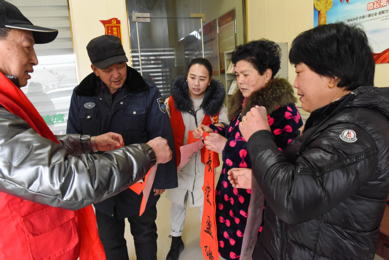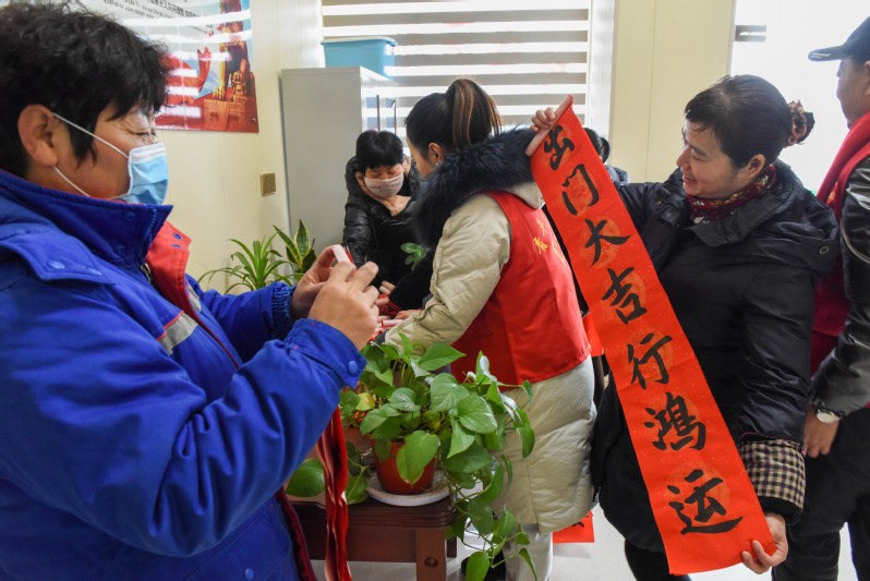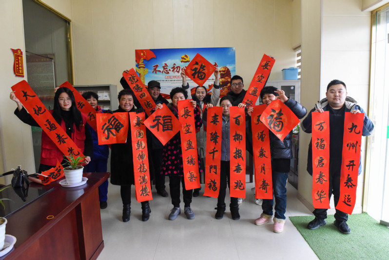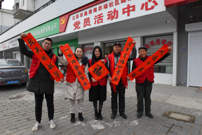 在節(jié)日期間,淮海書法協(xié)會(huì)會(huì)長黃建兵、老黨員林耀國等志愿者們,通過將300多幅預(yù)先寫好的春聯(lián)和福字,與農(nóng)場(chǎng)公司的黨員志愿者們,一一送到轄區(qū)部分黨員和職工居民家中,讓大家感受到節(jié)日的喜慶氛圍。