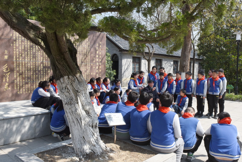 “我們給學生們就是要多講講過去黨的歷史,多說說農場的建場史,讓他們在實境教育和感悟中,提升思想境界,從而接過淮海人的接力棒,一棒一棒向下傳,確保農場的事業后繼有人。”胡福生表示。圖為胡福生老人在給學生們講傳統時的鏡頭。