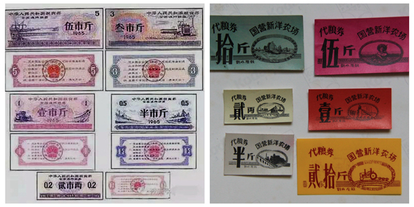 記得當時的糧票有全國糧票和地方糧票之分,地方糧票只限于在本省、市使用,農場也有代糧卷。那年祖母年老葉落歸根回老家四川定居,為能按月寄全國糧票回川,我們全家動員想盡一切辦法到處換全國糧票,可沒有一定的背景全國糧票是很難換到的,因此往往湊不齊,常受到老家親戚的責問,差點留下“不孝子孫”的罵名。那時不管大人小孩每人每年只有六尺布票,哪能年年做新衣啊,大人小孩的衣服都是補丁摞補丁的,實在不能穿了還要用來納鞋底。那時一年一家才最多有一斤糖票,有時供應還是黑黑的所謂紅糖。記得有一年我生了一場可怕的大病,醫生給開了張2斤的糖票,很是大面子了,對醫生好感激的。那時進城探親訪友,親友用有限的票證買幾包香煙或一斤糖、兩塊肥皂的送你,那可是大禮了,因為這是他和家人省給你的啊。