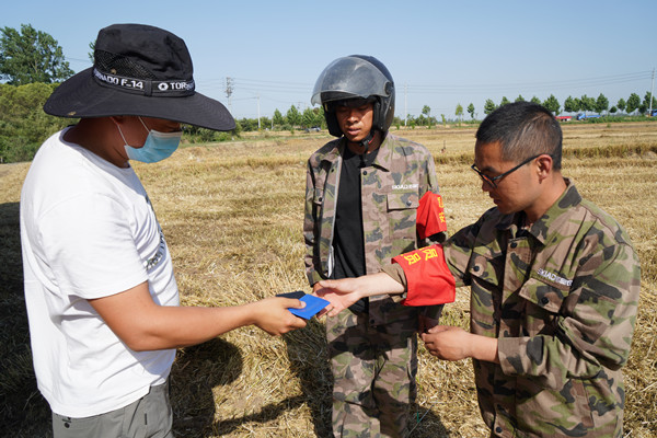 在三夏中,有每天巡查在一線指導慰問農業干群的公司領導、有天天在田間的生產隊長、有支援三夏一線不言苦的機關、社區管理人員、有為保障三夏安全有序的安全員等等,他們中大多數是黨員,也有預備黨員、還有入黨積極分子,他們都在用一顆火熱的心,用一言一行在向偉大的黨表白,我是黨員,向我看齊、看我行動。