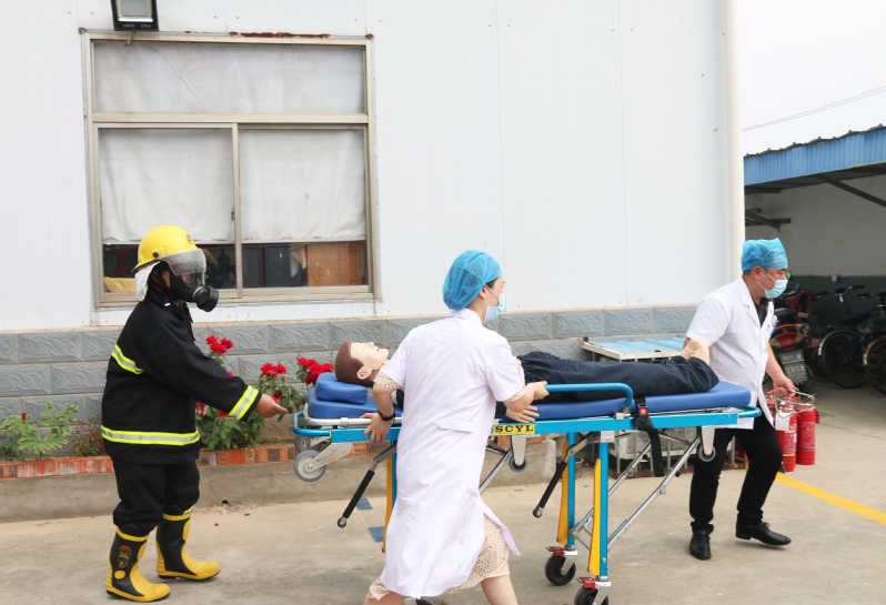 演練內容主要包括發生火災,準確報火警;啟動應急預案,搶險滅火組撲滅初期火災;安全保衛組引導人員疏散,現場警戒;醫療救護組進行傷員急救等。練中,警戒組、搶險滅火組、善后處理組、醫療救護組、通訊聯絡組各司其職,緊張、有序、高效地完成救援演練,取得了圓滿成功。