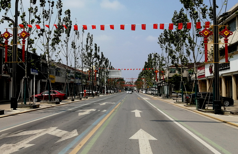 新洋注重環境的美化,緯四路上一條條過街彩旗延綿近千米,成為新洋一道美麗的風景,在風兒的吹拂下,彩旗飛揚,煞是好看。最近,人們發現,過街彩旗和過去不同了,煥然一新。過去的彩旗是三角形的,小旗是單一的顏色,沒有文字,也沒有圖案,而在七一前夕過街彩旗都換成了小國旗,那一面面國旗顯得那樣的莊重和熱烈,襯托出濃濃的節日氣氛.