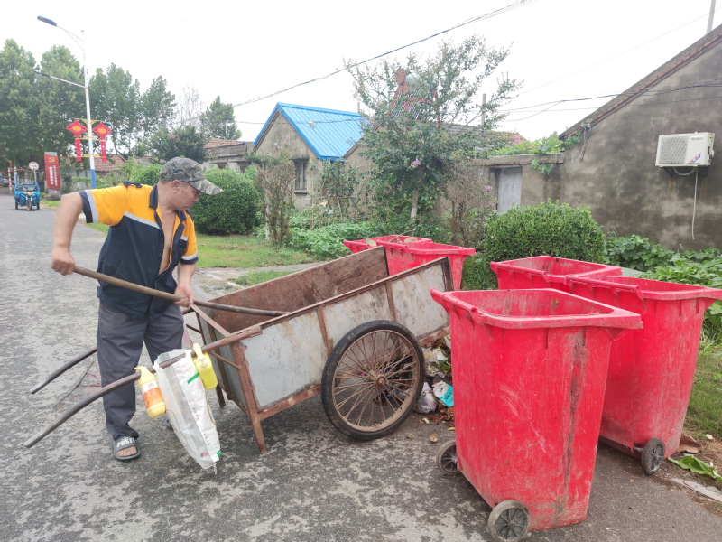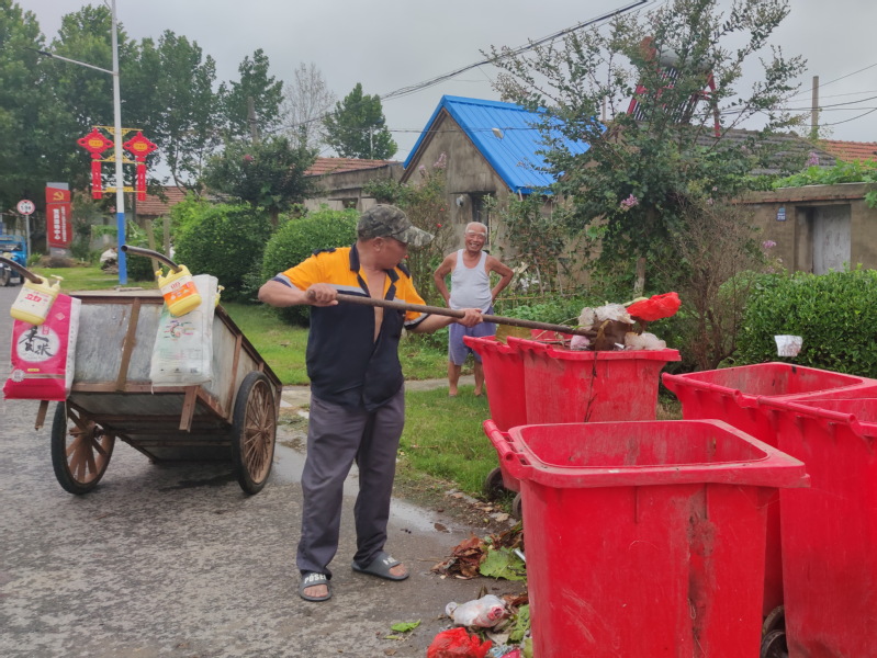 昨天下午,我在淮海農場振興路一側看到,農場城西環衛工工何亮明在汗涔涔地揮舞著鐵锨,將一家一戶收集并用拖車拖來的垃圾,又鏟到路旁垃圾桶里的鏡頭。聞著夏日垃圾散發出來的異味,我的心里不禁感嘆著,一個路人對這刺鼻的臭味異常敏感,何況一個每天3個多小時中,泡在這味中的環衛工人。正是他們的辛勤付出,換來了農場環境的美好和好心情