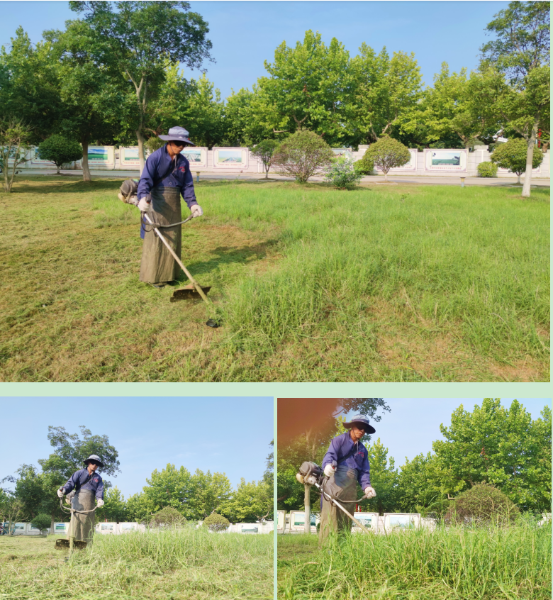 810日,立秋后第四天,雖然還是早上8點,但烈日炎炎下的戶外已經感受到了太陽的威力當人們在空調房享受涼爽之時,淮海農場社區綠化環衛所的員工們正冒著酷暑,在戶外揮汗如雨地進行著綠化草坪的修剪工作