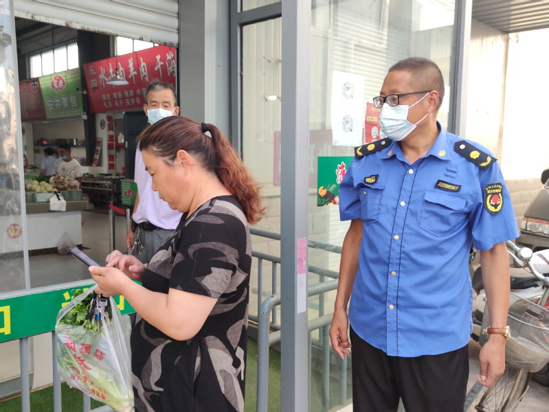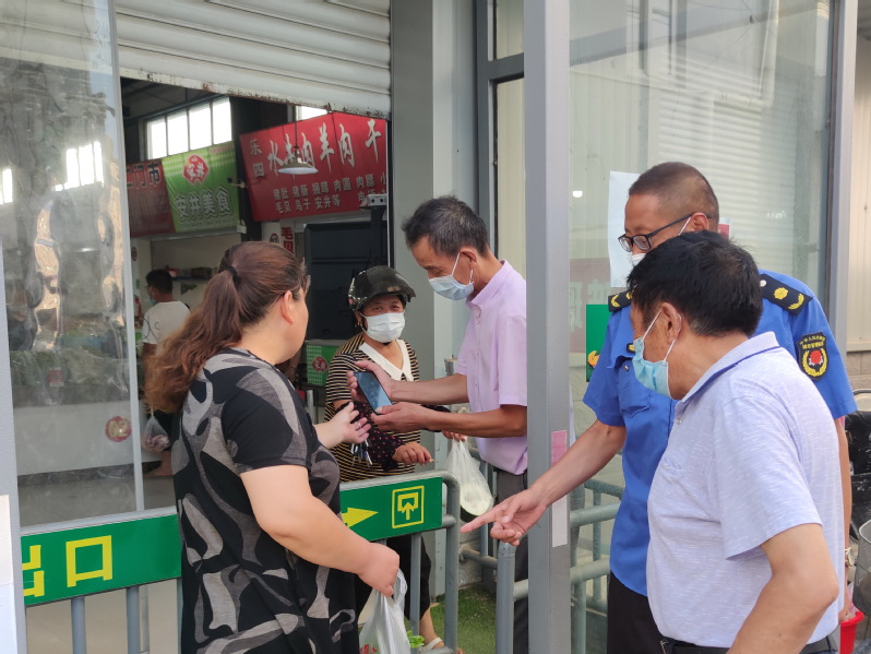 “還請你輸入下密碼?!闭f著,曹習(xí)生將手機遞到了買菜的居民手中。整個過程僅幾分鐘光景,就化解了居民沒戴口罩進出菜市場的難題。