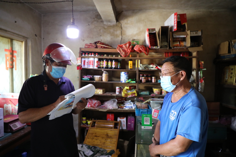 “早啊,最近沒出連云港吧?戴好口罩,沒事兒別扎堆啊,我們不能給農場添亂。”每天做好疫情排查登記,是梁德貴起床后做的第一件事。雖然在志愿者中他年齡最大,腿腳也不太靈活,但年齡和身體絲毫也沒有耽誤他工作的腳步。東灘居委會位于水產公司轄區,這里經常會有一些起早貪黑抓蝦捕魚的人,居民區分布較為零散,住戶中老人居多,不利于防疫工作開展。為了時刻掌握轄區內居民的活動軌跡和健康情況,梁德貴便騎上自己的三輪車挨家挨戶上門去了解,仔細地記下每家每戶的生活狀況。他與居民約定好具體時間,每天早、中、晚多個時間段,穿梭在居民組的各個角落,走訪入戶、排查宣傳、發放物資、為居民測量體溫登記等樣樣工作都不落下。他像一頭老黃牛一樣默默地做好每一件防疫工作:“防疫無小事,只有第一線的人做好了、做細了,才不會出差錯,”這是梁德貴常說的一句話。