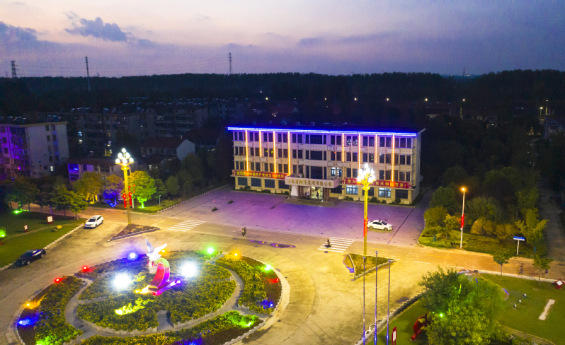 國慶佳節,夜色降臨,華燈綻放。紅的像火,白的如雪,紫的高貴,藍的深邃,新洋農場像披上了一襲華美的服裝,光彩照人。置身于黨建文化廣場上空鳥瞰這座城鎮,燈火輝煌,溢彩流光,夜景如夢如幻美不勝收,美如一幅山水畫。