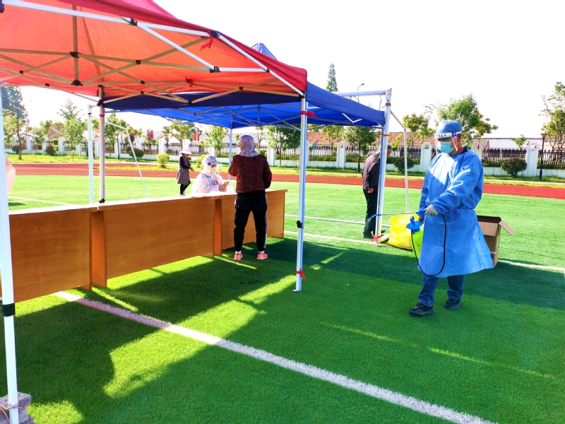 我在崗,您省心。“能做一點是一點,疫情防控是我們大家共同的事。”姜明亮是社區機關黨支部一名預備黨員,當他得知5月3日夜班值班人員臨時有事便主動請纓,從晚上八點到次日早晨八點,他把承諾當做責任來踐行。5月4日農場組織全員核酸檢測,他一掃夜班值守的疲憊,直奔迎湖健身廣場核酸采樣點,背上消毒機進行現場環境消殺。劉圩小學采樣點,只見一位“小藍”手拿擴音喇叭對著居民喊話:“病毒無情人有情,健康連著你我他,請大家保持一米線。”經過仔細辨認大家才認出她是社區財務劉玉。“平時聲音不大,維持秩序時聲音倒不小。”大家紛紛為她點贊。“您好,請出示身份信息。”三分場工作人員劉昕身穿白色防護服,正忙著采集身份信息。朝陽下,汗水浸透了衣衫、曬紅了臉頰,他卻沒有一聲抱怨。當天他共采集490個信息,這也是他連續五次完成三分場采集點數據采集任務。