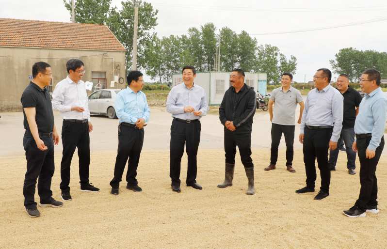 胡兆輝指出,三夏工作是墾區當前的重點工作,從臨海井然有序的三夏工作場面可以看出,臨海對三夏工作高度重視,干部職工戰三夏、促生產的干勁足、士氣高。當前,要利用晴好天氣全力做好保種保糧工作,協調好啤麥的收儲工作,要確保夏糧生產和保種工作全勝,更要抓好育秧、栽插管理,為秋糧豐收打好堅實基礎。胡兆輝強調,要協同各方面力量高效推進三夏生產,認真落實好各層各級安全責任,抓好安全生產。要加快推進江蘇農墾智慧農業科技園項目建設,讓園區盡快、盡早建成并投入使用,力爭把智慧農業科技園建成江蘇農墾研發高科技智慧農業的孵化器,成為江蘇農墾引領農業現代化發展的展示平臺。胡兆輝要求,臨海要加強與地方政府部門溝通聯系,加強與相關單位的交流合作,積極做好外拓基地的開發、建設和發展工作。要有效利用好外拓基地現有資源,通過輸入江蘇農墾先進的農業生產技術和管理模式,大力提高外拓基地農業生產水平,凸顯江蘇農墾農業生產的質量優勢、效益優勢、發展優勢,發揮好示范引領區域現代農業發展的生力軍作用。