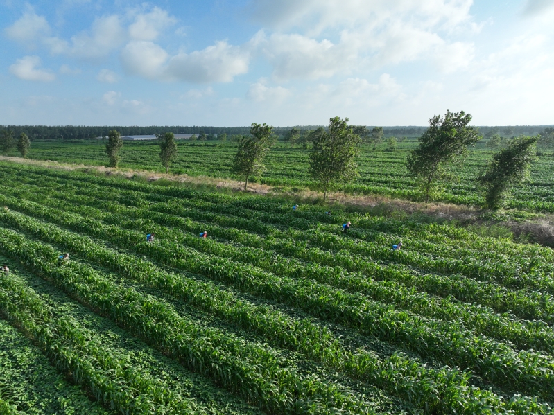 7月下旬以來,為促使玉米根莖葉同步良好發育、促進玉米穗大粒多飽實,同時兼顧大豆生長過程中對肥料的不同需求,蘇墾農發淮海分公司對玉米、大豆復合種植的玉米穗肥,采取專用施肥機和人工定點施肥的方法,有效地保證了玉米穗期營養的供給。圖為淮海分公司第四生產區34大隊在組織專業施肥隊在施玉米穗肥。