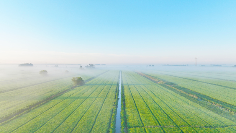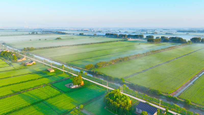 金秋,清晨,白馬湖境內晨霧彌漫,稻田、鄉道、朝陽、樹木、溝渠等若隱若現,勾畫出一幅和美鄉村的美麗畫卷。