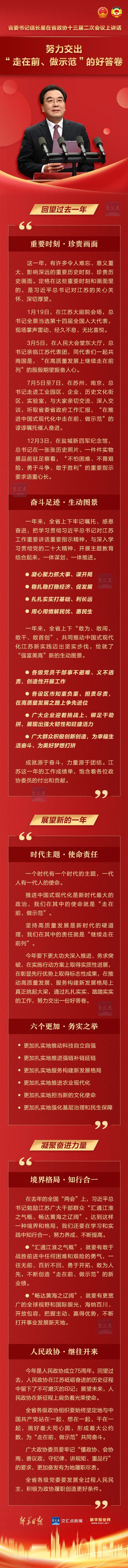 江蘇省委書記信長星在省政協十三屆二次會議上講話 努力交出“走在前、做示范”的好答卷