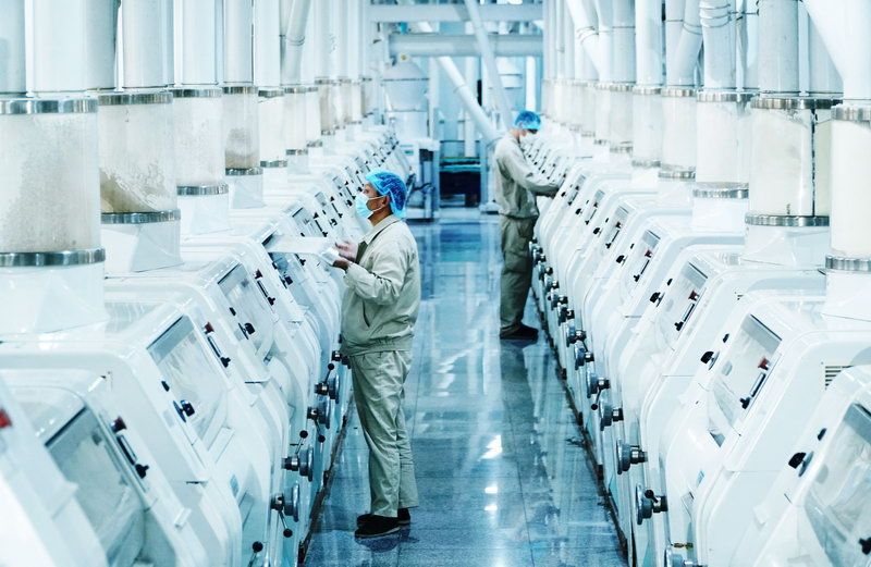 在明亮潔凈的全自動化生產(chǎn)車間里,幾排面粉生產(chǎn)線在中控室監(jiān)控下穩(wěn)定地運行著。該車間采用瑞士布勒集團現(xiàn)代化制粉工藝和設(shè)備,面粉加工由中控室全程控制,實現(xiàn)了全自動化生產(chǎn)。在廠區(qū)的谷物營養(yǎng)研發(fā)中心內(nèi),研究人員目不轉(zhuǎn)睛地盯著實驗設(shè)備,觀察各項實驗參數(shù),為生產(chǎn)高品質(zhì)產(chǎn)品把好科研關(guān)。加拿大小麥粉、油餅預(yù)拌粉、麥芯小麥粉、富含膳食纖維的全谷物小麥粉……一批批營養(yǎng)健康的食品,從古船車間走向百姓餐桌。