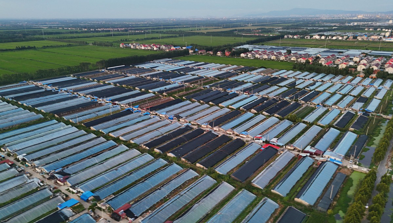 8月26日,連云港市海州區的江蘇農墾崗埠農場,千座溫室大棚整齊分布在大地上,與村莊、農田、樹木、河流自然融為一體,構成鄉村振興的美麗畫卷。徐衛 方冉冉 攝