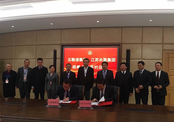 1月19日,集團公司與五糧液集團簽署戰略合作協議,推進五糧液釀酒專用原糧基地建設。集團公司黨委書記、董事長魏紅軍、總經理胡兆輝、黨委委員蘇志富,五糧液集團公司黨委書記、董事長李曙光、總經理劉中國,