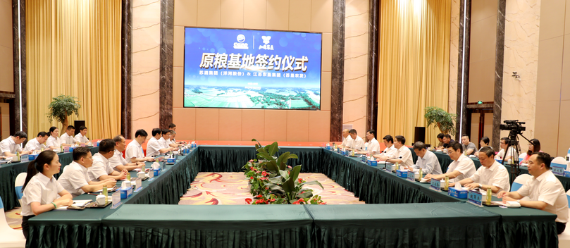 5月29日,江蘇農(nóng)墾(蘇墾農(nóng)發(fā))與蘇酒集團(tuán)(洋河股份)原糧基地簽約儀式在洋河酒廠隆重舉行。集團(tuán)公司黨委書記、董事長魏紅軍,總經(jīng)理胡兆輝,蘇酒集團(tuán)(洋河股份)黨委書記、董事長王耀,蘇酒集團(tuán)(洋河股份