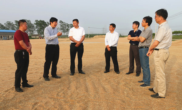 5月30日,集團(tuán)公司黨委書記、董事長魏紅軍,總經(jīng)理胡兆輝到蘇墾農(nóng)發(fā)宿遷分公司調(diào)研,蘇墾農(nóng)發(fā)公司總裁王立新參加調(diào)研。  在宿城基地程莊生產(chǎn)區(qū)21大隊(duì)麥田,魏紅軍看著豐收在望的麥田十分高興,在現(xiàn)場(chǎng)聽取