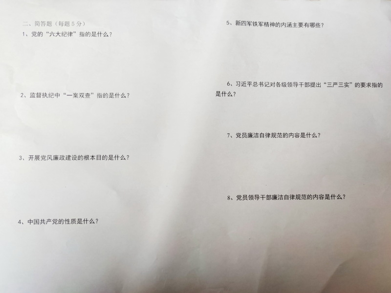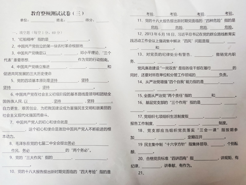 在測試前,派出所對廣大干警和聯防隊員進行了一次黨史的集中學習和輔導,輔導結束后,測試采用限時的形式進行,內容主要包括黨史、新中國史、改革開放史、社會主義發展史等。測試形式以填空題、簡答題兩種形式。在夜校考試現場大家專心致志認真答題,遵守紀律,考試氣氛濃厚。