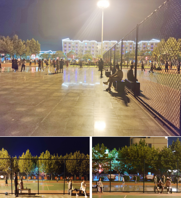 淮海職工休閑體育運動廣場是農場社區職工居民最活躍的健身場所,為了把關愛體現在民生需求上,農場社區在建設好10000平方米安全配套健身設施的同時,還以小事入手,陸續在廣場上配置了封閉式的籃球場網框、掛衣架、自助式冷藏式飲料機。同時在廣場配置有橢圓形大理石條椅、四周4張木質條椅的同時,還在運動場地上配置了4張長椅,極大地滿足了大家健身和中途休息的需要。