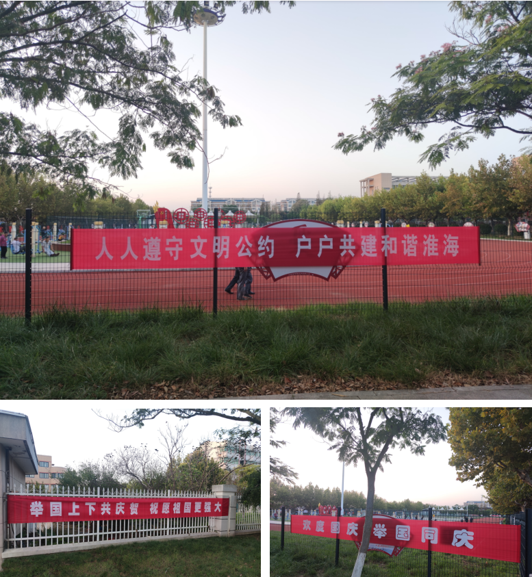 五星紅旗隨風招展,喜悅之情更是承載著人們對美好未來的向往。轄區(qū)升掛的國旗,懸掛國慶標語,文廣苑樓體上“人民有信仰 國家有力量 民族有希望”等主題宣傳標語等格外醒目,加上農(nóng)場在各個廣場上開展的群眾性文化體育活動及廣大職工居民進行休閑健身的鏡頭,既呈現(xiàn)出了淮海職工居民在祖國大家庭懷抱里安定團結(jié)祥和的良好社會氛圍,也再一次激發(fā)著農(nóng)場廣大黨員干部和職工群眾對黨、對祖國母親的無盡熱愛,昭示著廣大干部群眾在中國共產(chǎn)黨的領(lǐng)導(dǎo)下,感黨恩、聽黨話、跟黨走的信心和決心。圖為淮海在國慶期間懸掛的宣傳廣告橫幅。