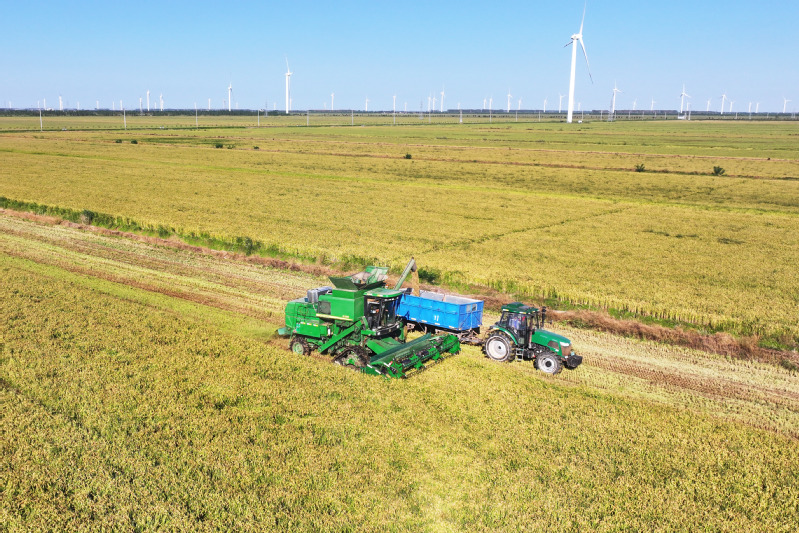 10月10日,江心沙農場100余畝“低GI”功能性水稻喜迎豐收,農機手駕駛收割機、運糧車來回穿梭,密切配合,確保顆粒歸倉。