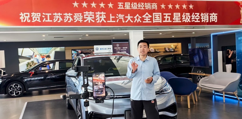 蘇舜公司創(chuàng)新“直播+服務”銷售模式,重點發(fā)力“抖音、小紅書”等平臺,加大直播場次與粉絲互動,將留資轉化率提升至12%,平均觀看時長達到23分鐘。圖為工作人員在直播間提供二手車在線置換評估、金融方案計算等服務。