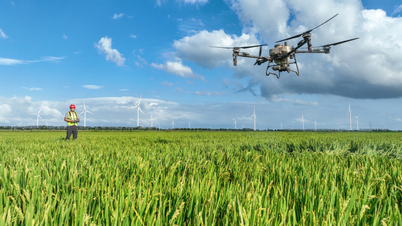 9月22日,蘇墾農發(fā)新洋分公司組織搭載有北斗導航系統(tǒng)的植保無人機,對處于灌漿期的水稻進行秋季田管作業(yè)。