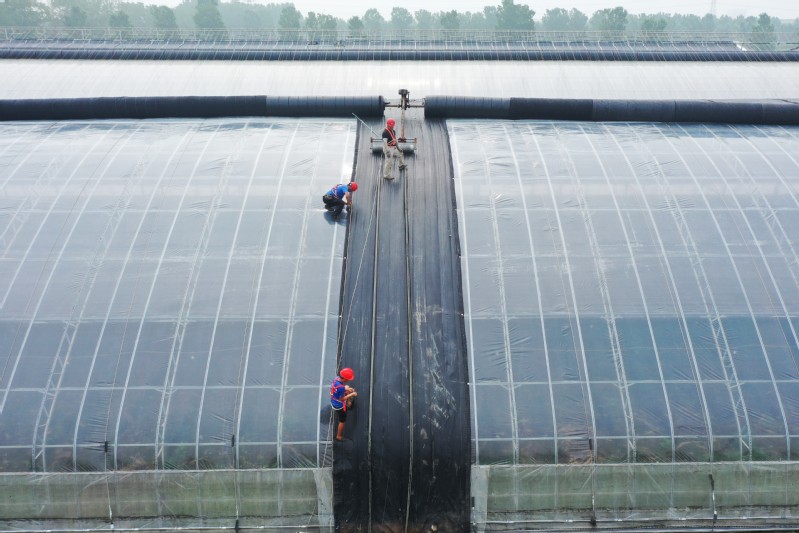 盛夏七月,正是葡萄掛滿枝頭的季節,云臺農場云水灣濕地公園葡萄采摘園的葡萄迎來豐收,吸引眾多游客前來體驗采摘樂趣。走進葡萄采摘園,濃烈的果香沁人心脾,翠綠的葡萄葉下,一串串顆粒飽滿的葡萄掛滿藤蔓間,十分誘人,工作人員正忙著將葡萄采摘、裝箱,一派繁忙火熱的景象。看到農場銷售人員微信朋友圈發布葡萄成熟的消息,游客張女士迫不及待地前來采摘。入園后不到半小時,她就摘了滿滿兩筐紫色的葡萄,她笑著說:“這里的葡萄很甜,每一串都特別好吃,不小心就摘多了。”據悉,云臺農場云水灣濕地公園葡萄采摘園的葡萄早晚熟品種搭配種植,匯集巨峰、夏黑、紅寶石、金手指、陽光玫瑰等20多個品種,目前上市的是夏黑、紅巴拉多品種,采摘期從7月中旬開始,可持續到9月底?!霸婆_葡萄除了有‘國家綠色食品認證’,還被納入《綠色食品標識使用典范(2023)》,2023年還榮獲最美優質農產品(葡萄)企業獎,甜度、口感都是上上佳品。每年我們還會舉辦葡萄采摘節、青少年研學拓展、品秋賞味等活動,讓‘采摘游’成為云臺農場的特色亮點。”云水灣常務副總經理卜馳龍說。