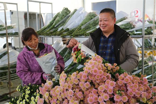 走進(jìn)富民農(nóng)業(yè)科技園14號(hào)大棚,雛菊鮮切花成熟上市,工人們正在溫室大棚里挑選裁切雛菊花。在包裝車間內(nèi),工人們正在整理數(shù)以萬計(jì)的雛菊,去掉多余枝葉,整理包裝成一束束精美的花束,不遠(yuǎn)處的三大排貨架上,全部都是五顏六色的雛菊?!拔覀儓@區(qū)種植了5個(gè)大棚的雛菊,約二三十個(gè)品種共15萬枝,現(xiàn)在相繼進(jìn)入采摘期。現(xiàn)在園區(qū)一邊采摘雛菊,一邊忙著整理包裝,準(zhǔn)備供應(yīng)山東客商?!眻@區(qū)副主任魏建東介紹說,剛上市的雛菊每天采摘量在2000枝以上,往后會(huì)越來越多,不斷滿足市場(chǎng)需求。隨著社會(huì)經(jīng)濟(jì)的發(fā)展和人們生活水平的提高,鮮花逐漸成為更多人裝扮生活的必需品,消費(fèi)理念的改善促使鮮切花品種結(jié)構(gòu)日趨豐富。其中,雛菊以其色彩繁多、花型多樣、瓶插期長(zhǎng)、耐運(yùn)輸、清新動(dòng)人的花姿,受到廣大消費(fèi)者喜愛追捧。崗埠農(nóng)場(chǎng)公司緊盯市場(chǎng)需求,大力發(fā)展多元鮮切花種植,引進(jìn)新品種、新技術(shù),積極探索發(fā)展新路徑新模式,走特色鮮花發(fā)展之路?!爱?dāng)前,我們園區(qū)大力發(fā)展鮮切花產(chǎn)業(yè),從種植、包裝、銷售逐步升級(jí),進(jìn)一步轉(zhuǎn)變經(jīng)營(yíng)模式,提高產(chǎn)業(yè)效能。在提高集體經(jīng)濟(jì)效益的同時(shí),發(fā)揮示范帶頭作用,為花農(nóng)的種植經(jīng)營(yíng)創(chuàng)造更有利條件,在增加場(chǎng)域就業(yè)上做文章,爭(zhēng)取實(shí)現(xiàn)社會(huì)效益的最大