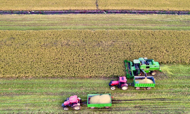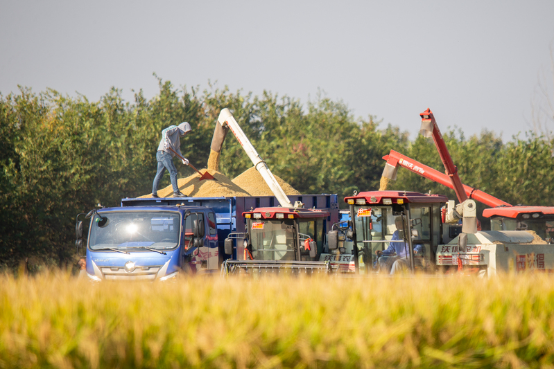秋風拂過,稻菽飄香。眼下,正值水稻收割季節(jié),云臺大地一片金黃。10月22日,蘇墾農發(fā)云臺分公司6000余畝水稻開鐮收割,在田間奏響“豐收曲”。機械轟鳴,沉甸甸的稻穗被攬入“懷中”,收割、脫粒、裝車,飽滿的谷粒傾瀉而下,被裝進運糧車里,工作人員美滋滋地看著田間的稻谷被收割殆盡,空氣中彌漫著稻谷的醇香。“今年我們的水稻長勢好、產量高,和我們以‘繡花功夫’狠抓精細化管理是分不開的。”云臺農場公司黨委副書記、蘇墾農發(fā)云臺分公司總經理宋光鋒在收割現場會滿意地說道。鄉(xiāng)村振興的核心是產業(yè)興旺,現代農業(yè)是云臺產業(yè)興旺的中堅力量。近年來,蘇墾農發(fā)云臺分公司堅持標準化生產方式,將技術、人才、信息等資源要素“引”向農業(yè)、“流”向企業(yè),充分發(fā)揮國有農業(yè)企業(yè)帶頭作用,為農業(yè)產業(yè)發(fā)展注入新的活力。據了解,今年“三秋”,云臺將投入小型收割機20臺用于水稻收割,并投入播種機13臺,預計本月28日全部收割完畢,稻茬小麥將于31日播種結束。下一步,云臺將扎實做好秋收秋種秋管工作,牢牢守住“糧袋子”,為推進鄉(xiāng)村振興和糧食安全貢獻云臺力量。